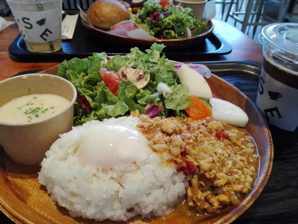 友人とランチに行きました。またこれが暑い日だったので、カフェでのランチはエスニック。家では使わない調味料(ナンプラーだったと思います)を使ったガパオライスでした。久しぶりに食べて美味しかった!最近ヘルシオで調理して、塩コショウオリーブオイルっていうのが多かったから、少し調味料のバリエーションを増やしてみようかな。
