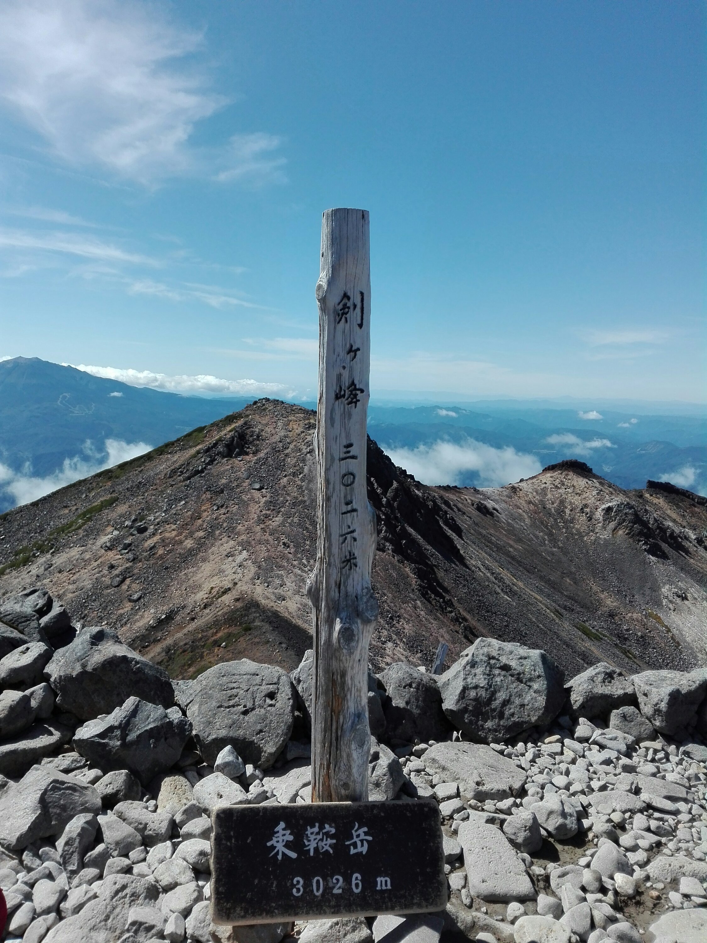 槍ヶ岳や穂高、反対側にはおんたけさん、白山も見えて、360度の絶景です。